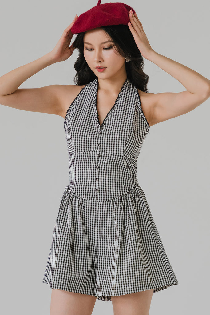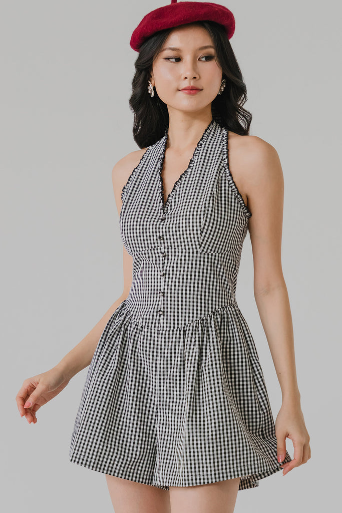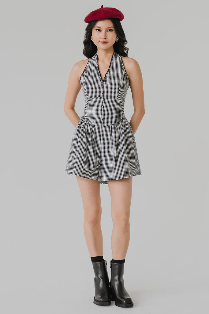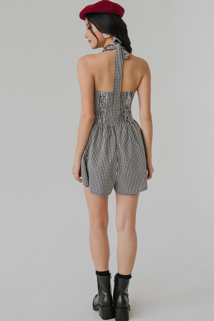 Rue Padded Gingham Romper (Black)