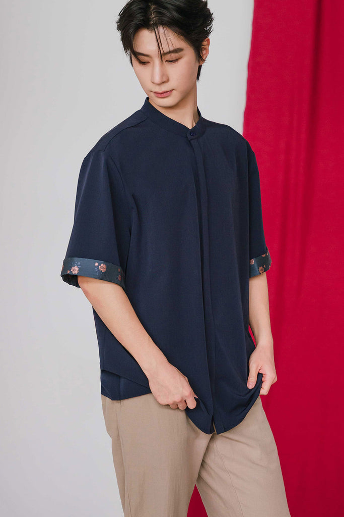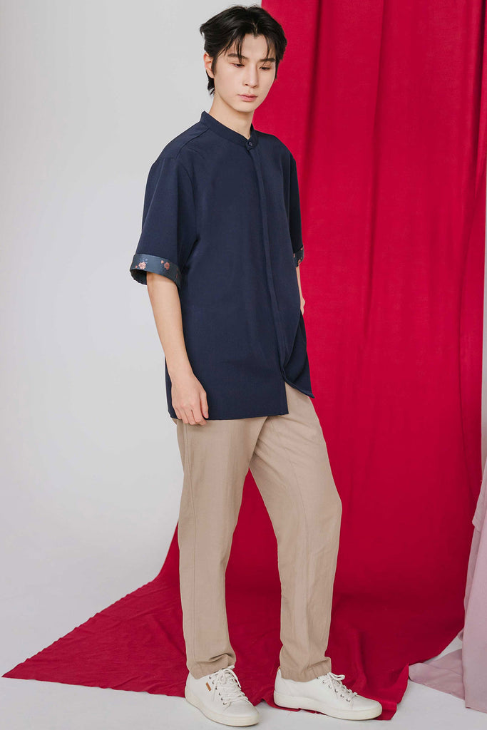Designed to complement coordinated family looks, this men’s shirt features a sleek concealed button front for a clean, refined appearance. The highlight lies in the elegant floral jacquard trimming on the sleeves, adding a subtle touch of texture and sophistication. Crafted for comfort and style, it’s perfect for festive occasions, celebrations, or stylish family gatherings where coordinated fashion stands out.