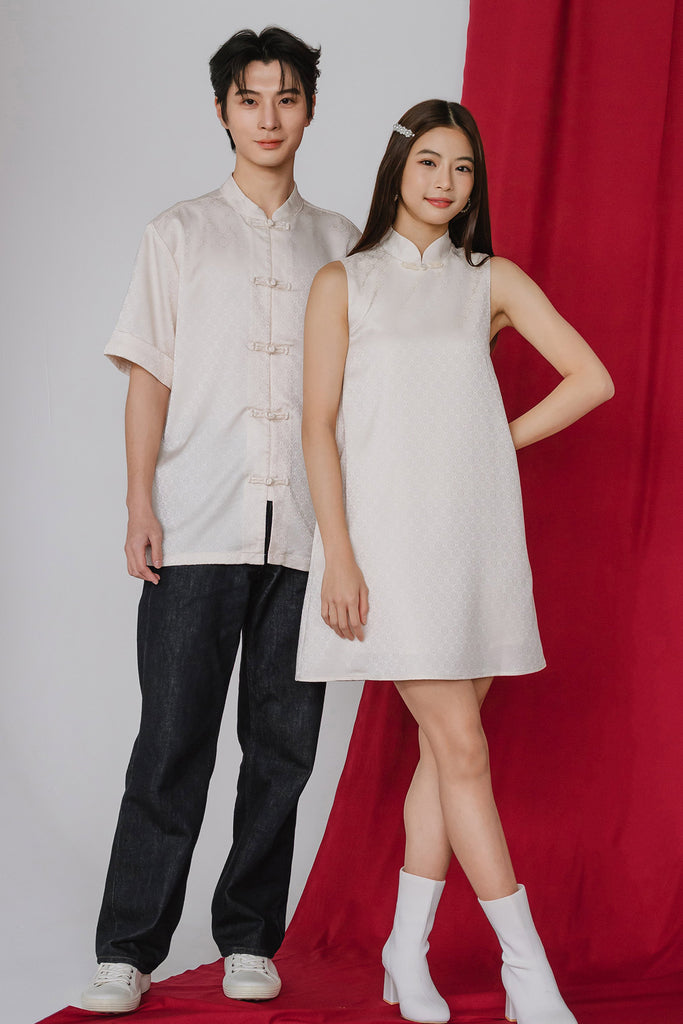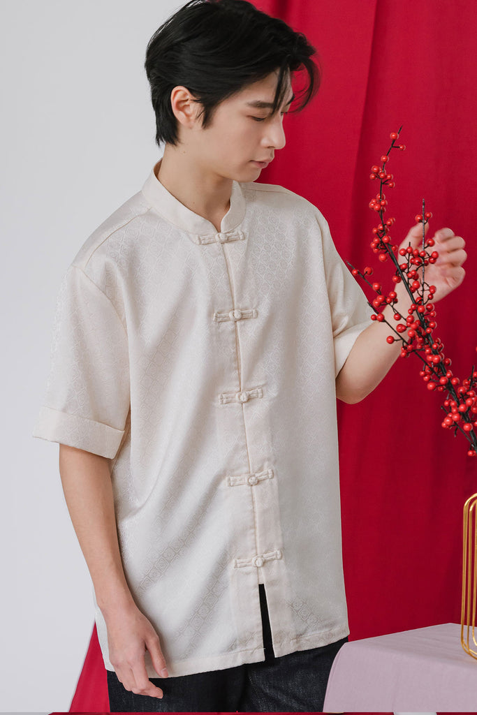 This men’s shirt features a refined mandarin collar and an intricate oriental-inspired print for a timeless, cultural touch. Designed with traditional pankou button closures at the front, it blends heritage detailing with modern wearability. Crafted from a lightweight, cooling fabric, the shirt offers breathable comfort and a smooth feel, making it ideal for warm weather or all-day wear.