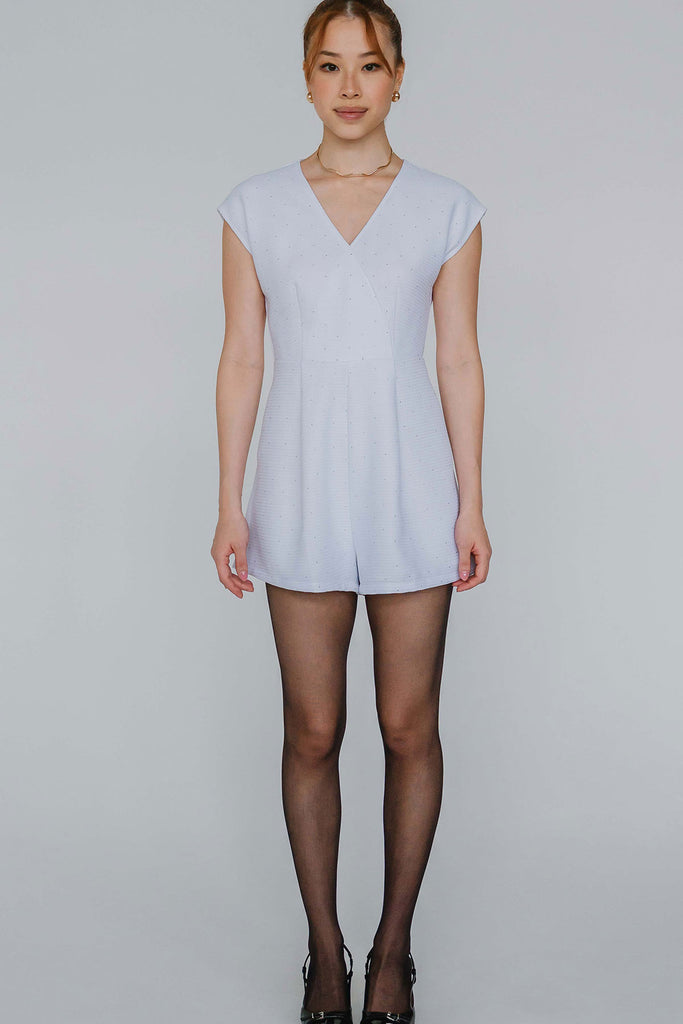 Turn heads with this statement romper, featuring sparkling bling embellishments that add a touch of glam. Designed with two functional side pockets, a concealed back zipper for a sleek fit, and fully inner lined for comfort. Perfect for parties, nights out, or any moment that calls for a little extra shine.