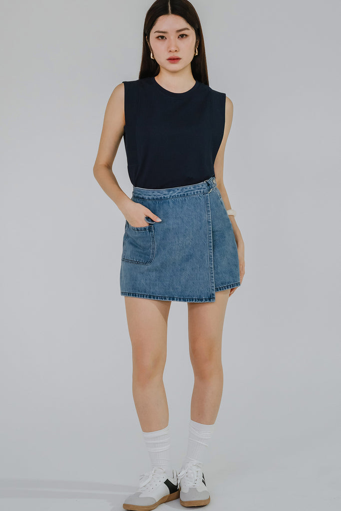 Elevate your casual style with this effortlessly cool denim skort. Designed to combine the comfort of shorts with the polished look of a skirt, it features a flattering front flap detail that mimics a mini skirt silhouette. The secure side button clasp adds a modern touch while ensuring an easy fit. Perfect for pairing with anything from graphic tees to structured blouses, this skort is your new go-to for laid-back days with a stylish twist.