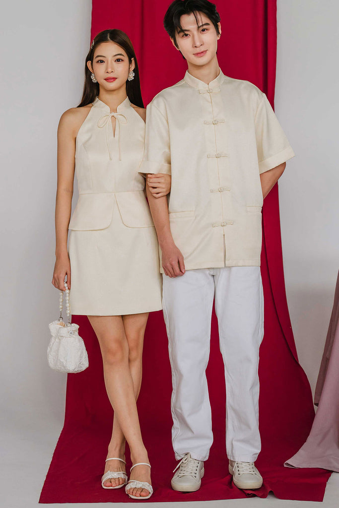 This tweed qipao dress offers a sophisticated twist on a classic silhouette, designed to look like a chic two-piece while remaining a single garment. Fully inner-lined and featuring removable padding for customizable support, it also has a back zipper for a smooth fit and a delicate ribbon tie at the front for a feminine, polished touch. Perfect for occasions that call for timeless elegance with a contemporary edge.