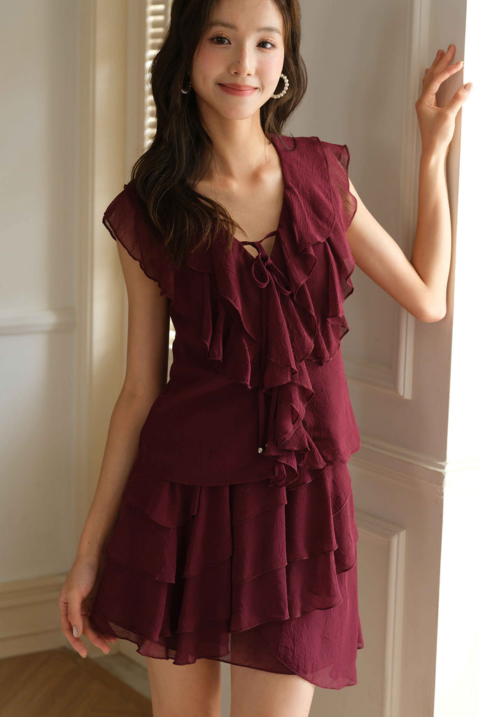Playful yet polished, the Lucien Ruffle Skort brings movement and charm to your everyday wardrobe. Featuring soft cascading tiers for a feminine flair, this piece is thoughtfully designed with shorts lining for comfort and confidence. A concealed side zipper ensures a seamless silhouette, making it easy to slip on for both casual outings and elevated occasions.