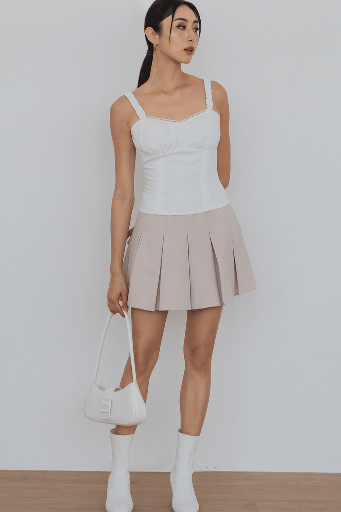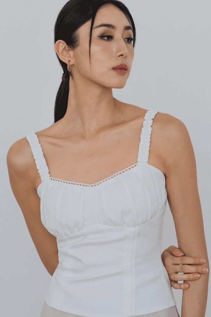 Feminine charm meets everyday comfort in the Lumiere Trim Padded Top. Featuring delicate floral prints and a flattering bustier silhouette, this top is designed to enhance your shape while keeping things effortlessly chic. The ruched front, cinched waist, and subtle neckline details add romantic touches, while the smocked back and stretchable straps ensure a flexible, secure fit. With removable padding and full inner lining, it offers both comfort and coverage for all-day wear.