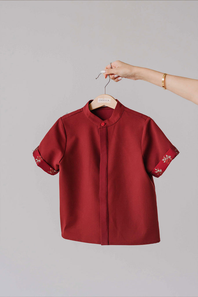 A mini version of the men’s shirt, this boys’ design features the same refined details for a coordinated family look. It comes with a neat concealed button front for a clean finish, complemented by floral jacquard trimming on the sleeves for a touch of elegance. Comfortable and stylish, it’s perfect for festive occasions, celebrations, and matching family moments.