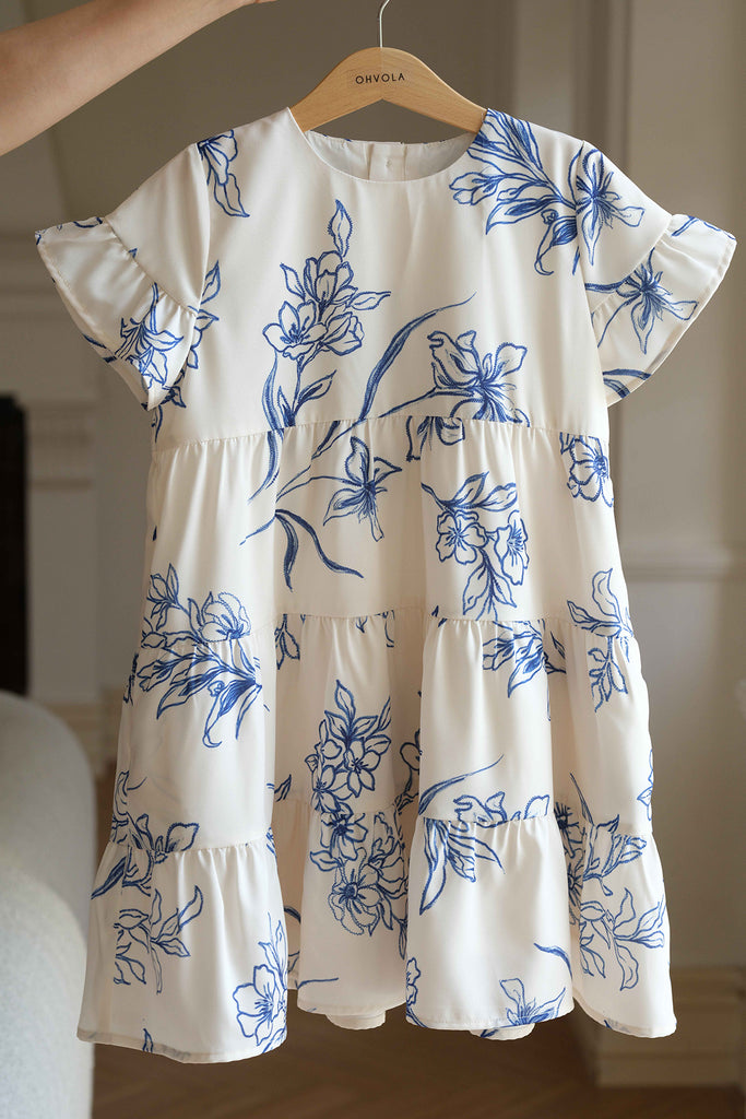 This girls’ mini dress is crafted from soft cotton fabric for all-day comfort. It features a classic round neckline, cute sleeves, and handy side pockets for little treasures. Back buttons make dressing easy and fuss-free. Available in three charming prints to suit every little personality.