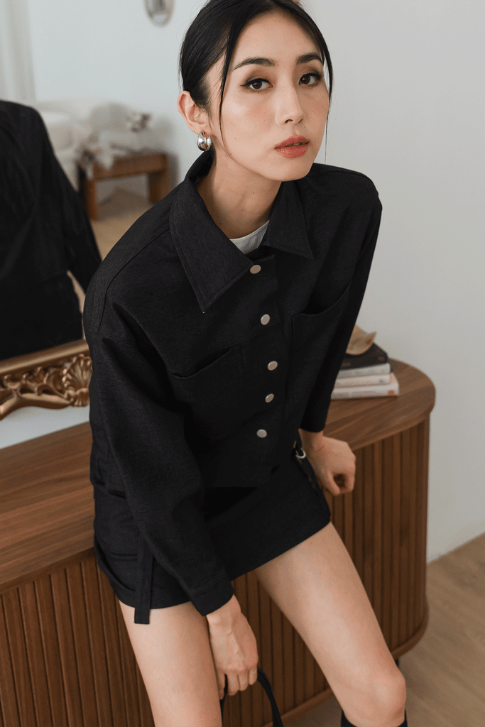 Effortlessly versatile, the Chrome Cut Jacket is designed to be worn as lightweight outerwear or styled solo as a statement top. Crafted from a breathable, non-stretch cotton-linen blend, it offers comfort and structure in equal measure. Thoughtful details include functional front pockets and buttoned sleeves for added styling flexibility. Whether layered or worn on its own, this jacket brings a polished edge to any look.