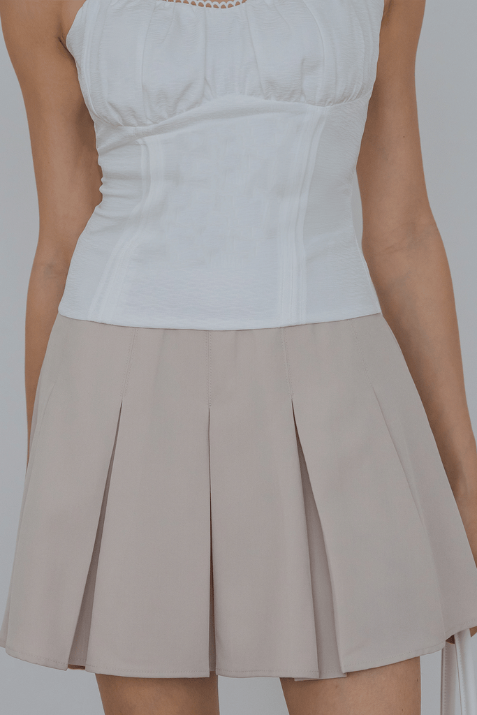 Move freely with style in the Rodrigo Pleat Skort – where classic pleats meet modern functionality. Designed with wide pleat detailing for a flattering silhouette, this skort combines the elegance of a skirt with the ease of built-in shorts. It features two functional pockets, a smooth concealed back zipper, and full lining for added comfort and coverage. Crafted from a premium rayon-polyester blend, it offers a soft, breathable feel with just the right amount of structure.